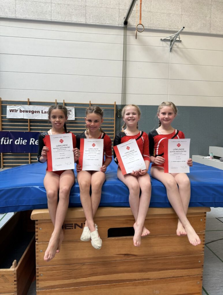 WeiterlesenAm letzten Wochenende waren die Turnerinnen der TSV wieder fleißig am Turnen. Am 14. Juni fand der Mannschaftwettkampf des Jahrgangs 2010 und jünger in den Leistungsstufen P5-6 in Biebesheim statt. Die Mannschaft mit den Turnerinnen Frida Becker, Thalia Pinto Rodriguez, Goldy Wiedemann und Sarah Yagis landeten mit 159.700 Punkten auf dem 4.Platz und verpassten nur ganz knapp das Treppchen.